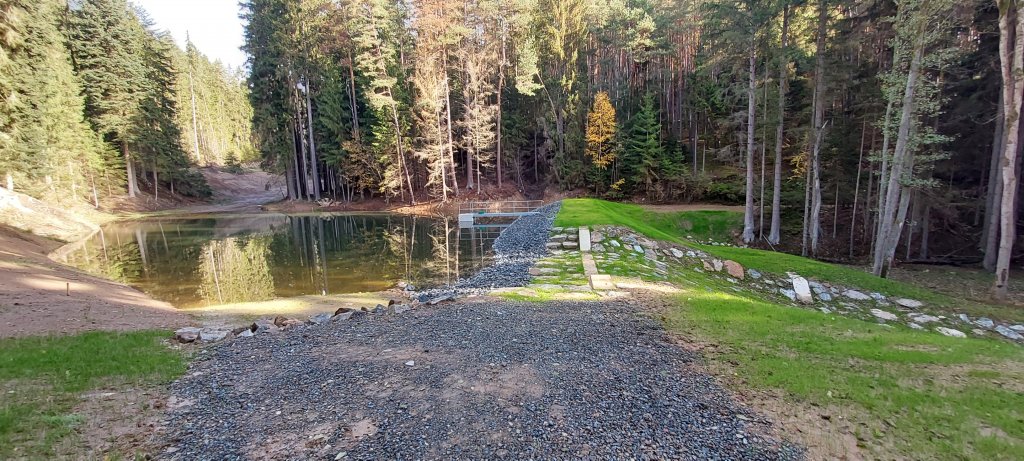 Jednalo se o nefunkční historickou vodní nádrž v lesním komplexu. Při výstavbě bylo využito pozůstatků hráze v místě překopu byla doplněna spodní výpust a v pravém zavázání bezpečnostní přeliv.