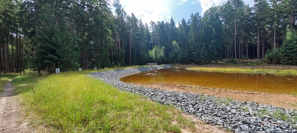 Jedná se o drobnou vodní plochu v lesním komplexu v pramenné části toku. Účelem akce bylo uvedení nefunkční vodní nádrže v majetku LČR do provozuschopného a\a technicky bezpečného stavu. Součástí prací byla rekonstrukce hráze a funkčních objektů – bylo vybudováno nové vypouštěcí zařízení a bezpečnostní přeliv s rozlivem do okolního terénu. Zároveň došlo k odstranění sedimentu ze zátopy s ponecháním bezzásahové zóny v místě nátoku do nádrže. Dále v rámci podpory rozvoje vodních a na vodu vázaných druhů bylo provedeno zmírnění sklonů břehových částí zátopy.